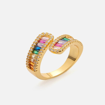 - التفاصيل: خاتم بتصميم متداخل يتزين بفصوص من الزركون اللامع و الملون