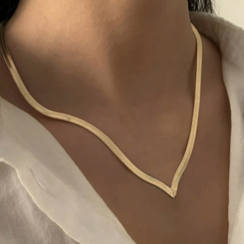 قلادة ذهبية بسيطة وأنيقة على شكل حرف V